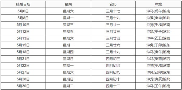 2023年5月份的结婚吉日就是以上这些啦!其中结婚吉日在周末的只有五天,想要在5月结婚的小伙伴赶紧选好日子,离2023年5月也不远了,那些热门的婚宴酒店可是要抓紧预定起来哦~