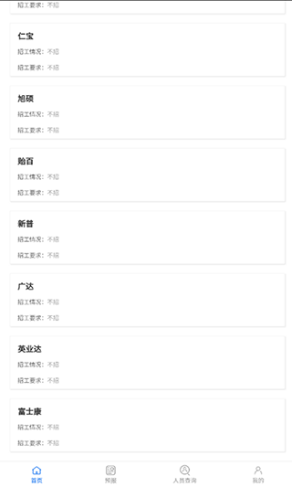 -- 人员查询,通过人员的姓名即可高效搜索,精准的搜索对应的人员信息;-- 招工信息,大家可以在软件内查看到各个单位发布的招工信息,了解详情;
