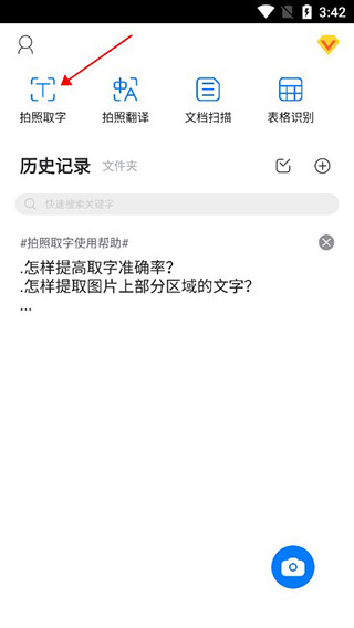 1、在本站下载拍照取字专业版apk,点击左上角的拍照取字;