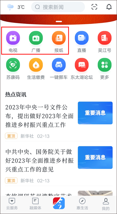 今吴江客户端还将吴江主流新闻舆论平台进行了深度整合,将传统媒体领域的电视、广播、报纸等载体进行了数字化集纳,完美呈现在广大吴江市民的互联网生活中,让市民“一端在手,电视、广播、报纸都有”