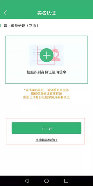 6、点击上方加号进行身份验证,身份证不在身边也可以手动输入,即可点击下一步。