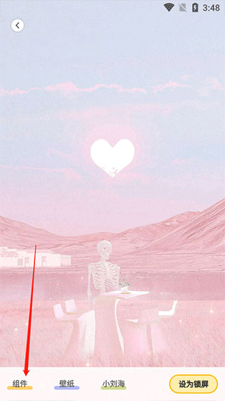 3、选择完壁纸进入组件设置页面,点击左下角组件按钮。
