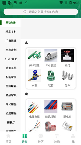 2、点击分类,装修的各种建材商品、装修后的家居都能在这里找到的到;
