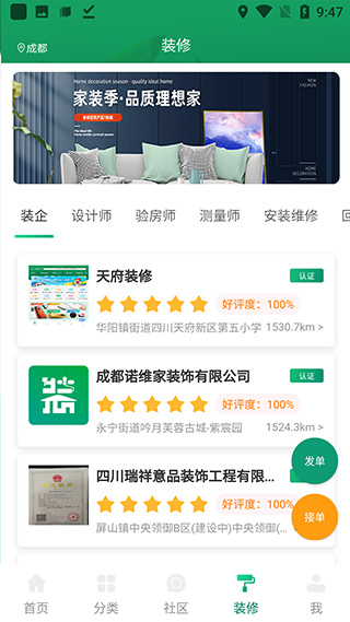 4、点击装修,这里有各种家装企业可供用户挑选。