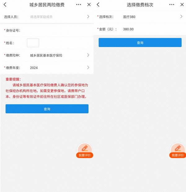 3、选择本次缴费的参保人以及缴费险种和缴费年度后点击“查询”。