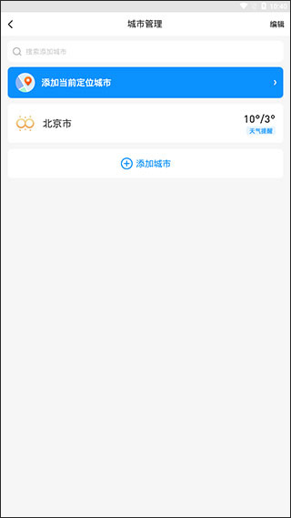 2、接着会进入到城市管理界面,再点击下方的【添加城市】。