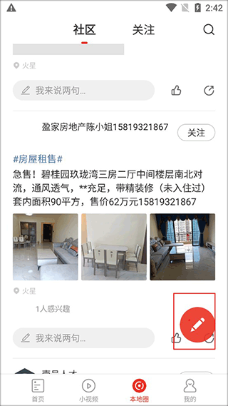 在本地圈界面内的右小角有个笔的图标,我们点击它。