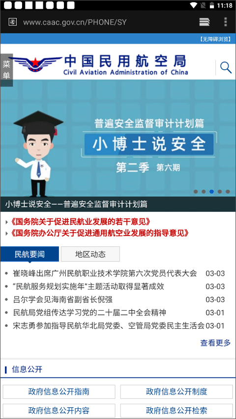 中国民航局网站app是中国民用航空局政府网站官方推出的一个移动门户平台,它能够及时为移动公众用户同步提供民航局政府网站最新政策、动态与数据等服务。