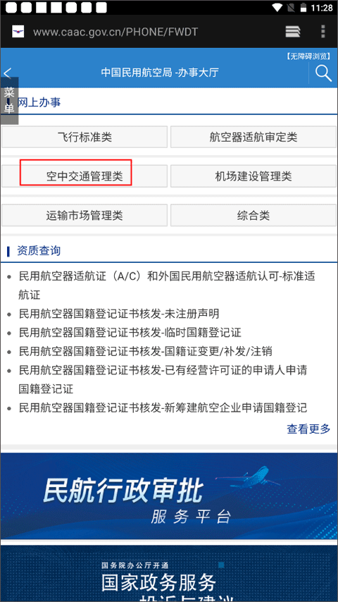 4、根据你自己的需要来选择你要查询的职业技能类别,以“空中交通管理类”为例。