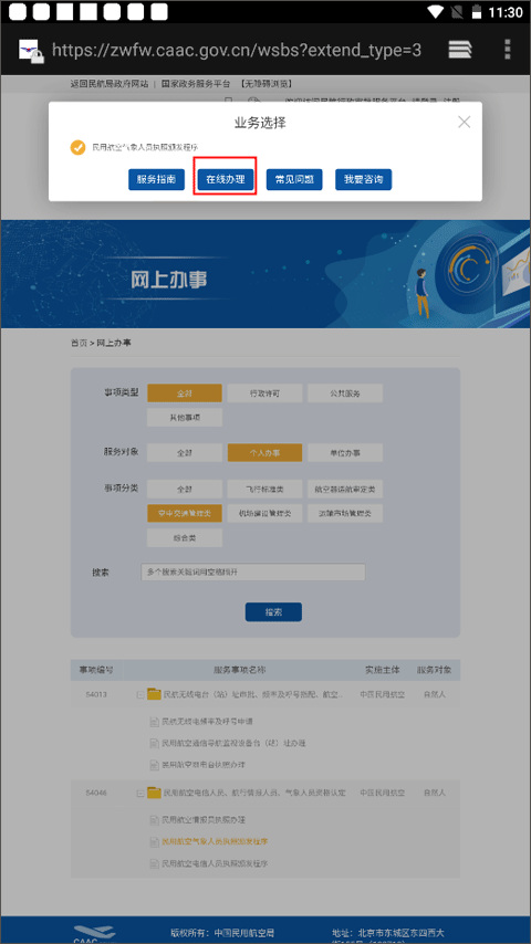 用户如果对航空方面有什么问题,可以通过这个中国民用航空局app里面的互动板块进行公众留言,这样后台的工作人员就会在一定时间内帮你解决相关的问题。此外,如果你想线上办理相关的业务,可以跳转到该应用的网页版,这样能够为用户提供快速、便捷的业务办理服务。