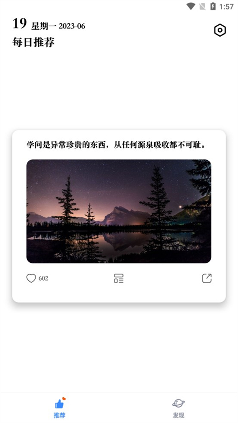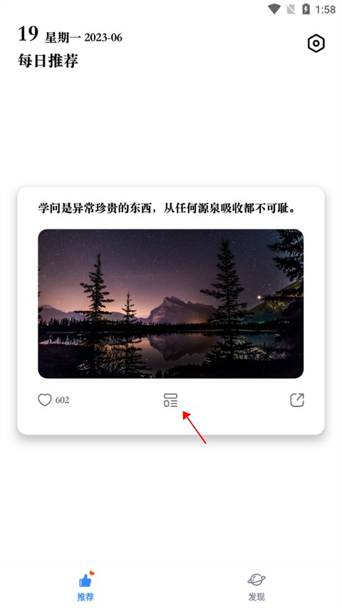 2、可选择推荐、早安、晚安、励志等栏目查看语录,找到喜欢的文案;