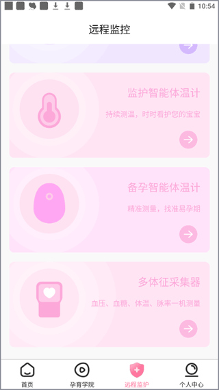 1、远程监护模块一共有几个监护设备?目前远程监护共有三款监护设备,分别是多体征采集器、胎儿监护仪、超声胎音仪、排卵试纸。