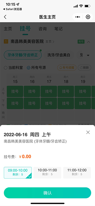 8、选择自己就诊的时间段后点击确定即可预约成功。
