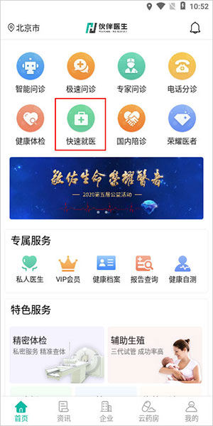 4、要去看病前首页点击快速就医可走快速通道,就医快人一步;
