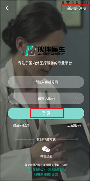 1、打开手机上下载好的伙伴医生app,注册登录;