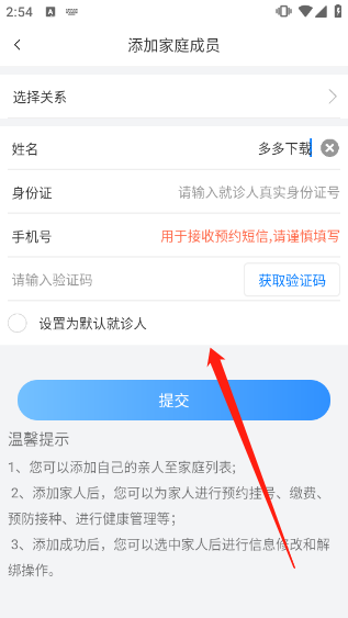 ②添加家人后,您可以为家人进行预约挂号、缴费、预防接种、进行健康管理等;