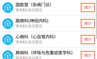 2、选择一个要预约的门诊科室。