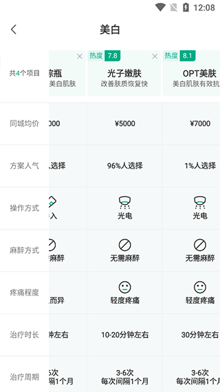 3、对比结果如下,根据用户自身的需求来决定医美项目。