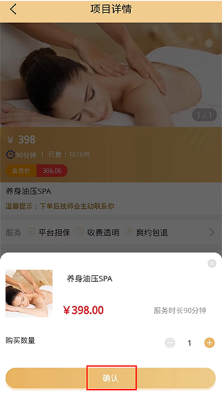 1、进入艺馨到家app,选择需要的服务项目。如:养身油spa。
