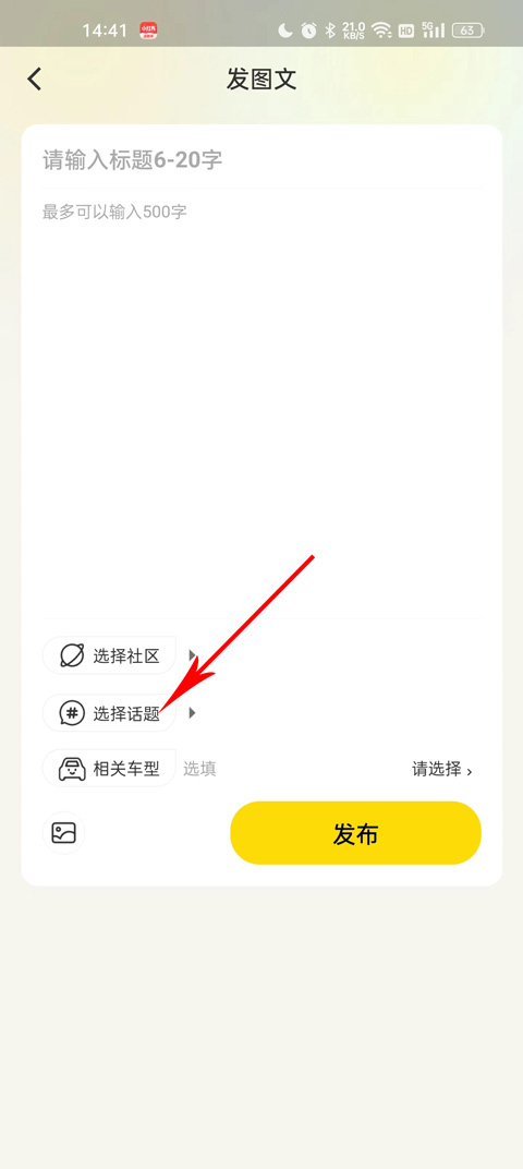 4、在发图文的编辑板块中的下方,找到选择话题,添加一个你想添加的话题,最后编辑文字,最后添加图片然后发布文章就可以了。