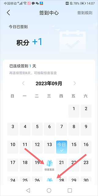 3、并且应用的签到中心还会提前为用户预备惊喜盲盒来等待用户签到领取