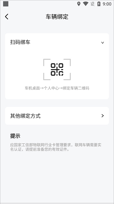 2、在打开的车辆绑定页面中通过扫描车辆中控大屏上的二维码即可绑定车辆
