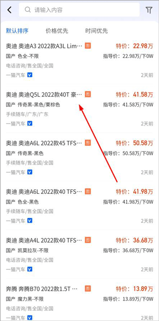 2、车源页面,可以搜索不同价格、时间的车源资料;