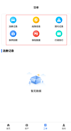 4、点开工单,里面可以查看消费记录、故障信息、预约记录、保养时间等多种服务;