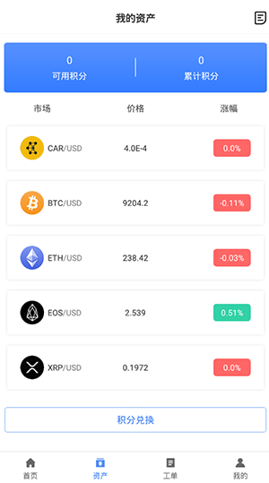 3、点开资产,可以查看自己的可用积分,积分还可以兑换礼包;
