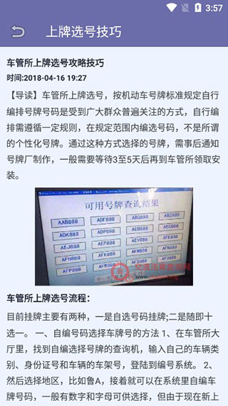 1、一键查询上牌选号技巧,获取最新详细说明信息2、即刻查询附近车管所、交警队、等车辆管理处位置