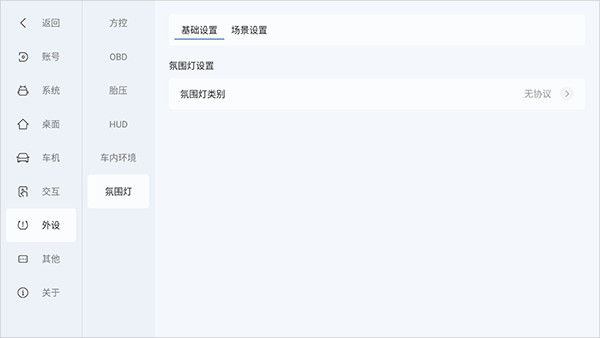 外设设置可以对胎压、车内环境、氛围灯等进行设定