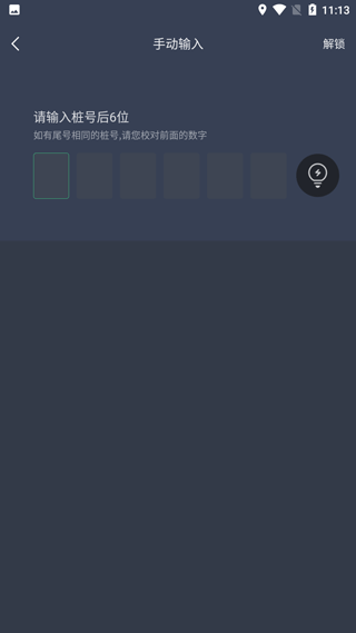 3、点开扫码,扫描充电桩上的二维码或者输入充电桩后六位进行解锁。
