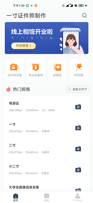 1、打开在本站下载的一寸证件照制作app,选择自己想要的证件照类型