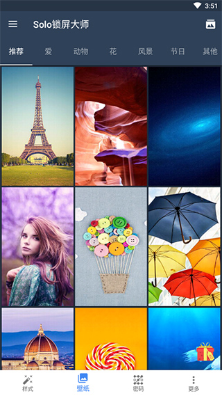 Solo锁屏大师app是一款非常专业的手机锁屏软件,又名solo locker,在该软件中为用户们提供了动态唯美的个性场景及锁屏主题、百变趣味独特的解锁方式、快捷便利的应用入口,让你可以制作出一个属于自己的手机锁屏。同时在制作的过程中,用户可以灵活的运用照片锁屏、九图锁屏、九宫格锁屏、自定义锁屏、滑动锁屏、数字锁屏、小工具、壁纸、辅助软体等功能进行辅助制作,在效果上绝对会更好。产品特点