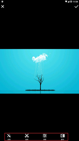 3、现在你可以对图片进行编辑了,支持添加滤镜、裁剪、图片调整、翻转功能;