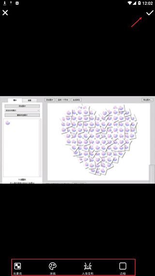 5、另外,点击主界面的实用工具,,可以对图片进行马赛克、涂鸦、人体变形、边框的添加,编辑完成后,可以点击右上角的√保存;