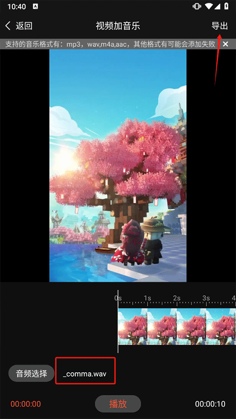 4、添加后的音乐会显示在左下角,完成后点击导出即可