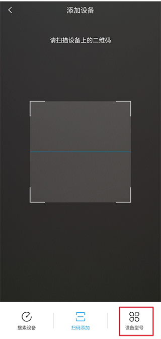 2、将手机对准设备上的二维码进行添加,或者点击下方设备型号