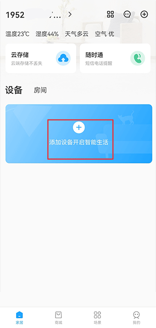 1、打开万佳安智生活软件,在首页中点击添加设备