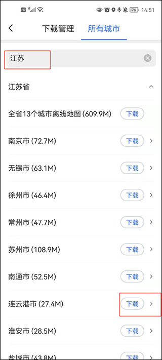6、除此之外,需要使用离线地图的朋友们,注意看了!!!想更快的去查看你需要的离线地图资源,可以根据上方栏中,输入地区的首字母即可快速查看,依次下载即可。