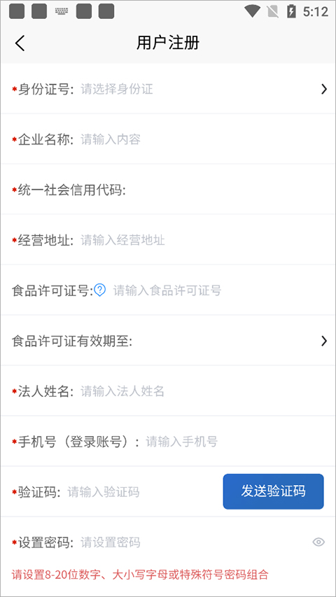 3、接着在打开的新页面中输入身份证号、企业名称、法人姓名、手机号等重要信息,并设置密码