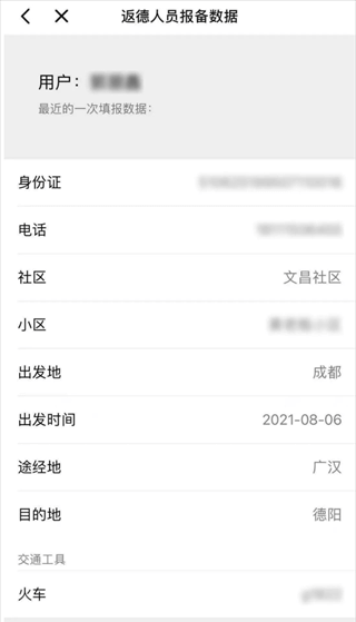 4、填报完成后,该报备数据会在社区管理员管理名单中出现,社区管理员将会与您联系,请您遵守相关防疫规定。