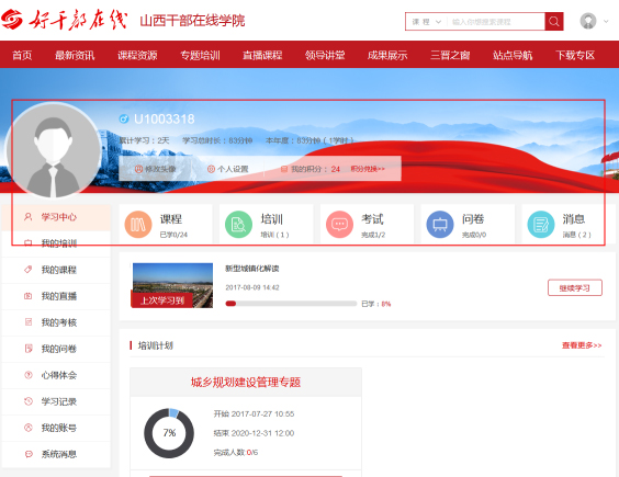 (1)学习中心:查看学员当前的学习进度以及状态