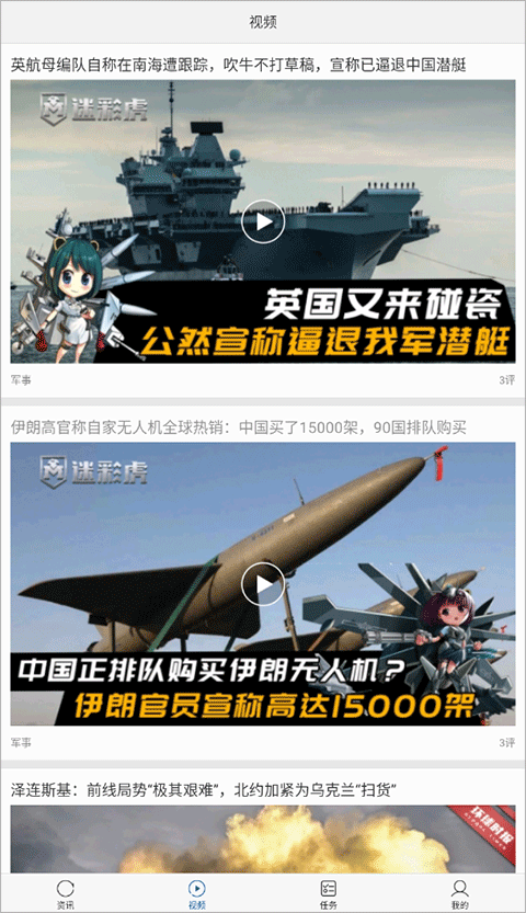 5、视频:大量的军事类、武器装备类、各国军队趣闻的小视频,更有突发事件的视频解读。