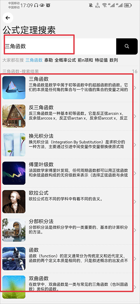 1、可以随时查询各种公式和定理的内容,在手机上搜索更方便