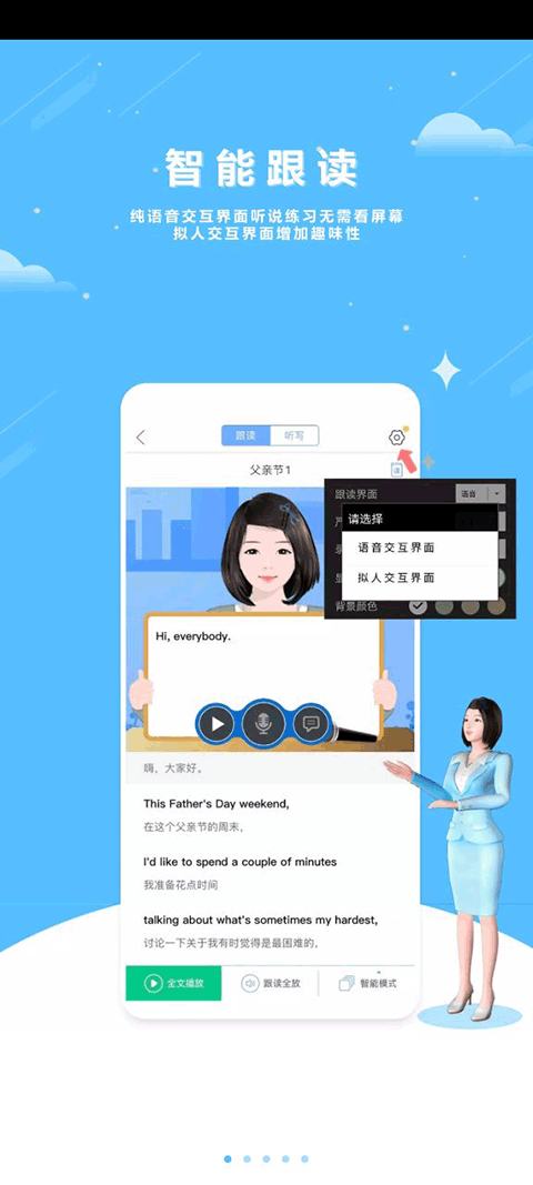 当然这款app功能可远不止这些,我们还可以在纠正实时反馈,领读、录音、背诵、智能等多种模式进行随意的切换,可以说如果想学好口语,那这款app是大家必不可少的工具,大家还等什么,快快下载这款app体验最优质的口语教学吧。