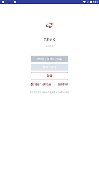 1、再本站下载打开手机研修app2022,进入手机号密码登录,也可通过扫描二维码进行登录;