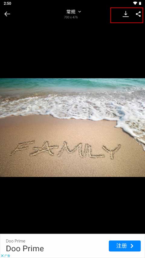 4、制作好的沙滩字体可以点击右上角的分享或下载按钮,保存到相册或分享到社交平台上都可以。