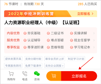 2、根据自己的需求选择课程,点击课程进入界面后,点击“立即报名”即可。