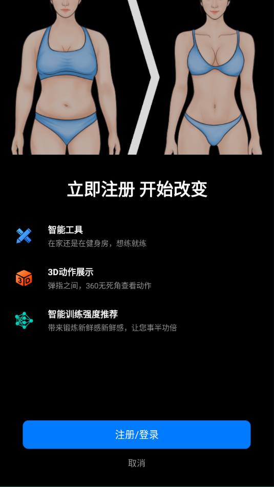 change健身app是一款健身管理的软件,给你专业科学的健身规划,让你的健身体验更舒适。你能选择健身的方式,用于减脂、塑性、增肌等各方面,让健身更有针对性,提高健身的效率,能够适用于多个健身场景,让你的健身更方便,提高健身的质量。通过3D展示的教学掌握各个健身动作的要领,让健身动作更完美,健身更专业。